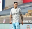 Jefferson Duque (d) de Nacional tras perder hoy, la final de la Primera División del fútbol profesional colombiano ante Millonarios en el estadio El Campín en Bogotá (Colombia).