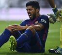 Piqué y Suárez terminan el partido golpeados